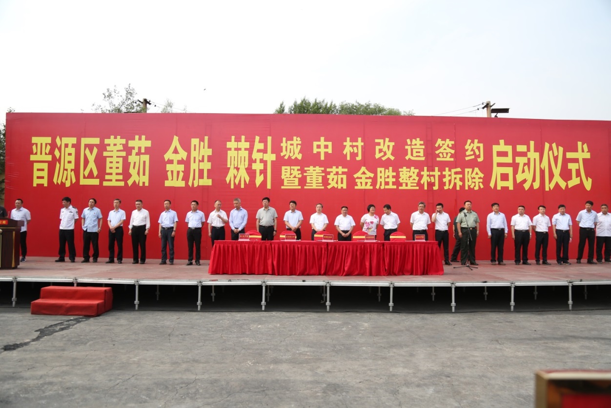 夏日如花,水光瀲滟。5月21日,晉源區(qū)城中村改造“百日攻堅(jiān)”誓師大會(huì)在位于晉陽(yáng)湖湖畔的董茹村舉行,董茹村、金勝村、棘針村三村城中村改造簽約儀式在現(xiàn)場(chǎng)群眾的期待和注視下舉行,同時(shí)也標(biāo)志著我公司晉陽(yáng)湖項(xiàng)目正式全面啟動(dòng)。在誓師大會(huì)上,總經(jīng)理蘭衛(wèi)軍同志代表太原國(guó)有投資集團(tuán)有限公司與晉源區(qū)人民政府、晉源區(qū)經(jīng)投公司、金勝鎮(zhèn)、羅城街辦、董茹、金勝、棘針三村村委會(huì)負(fù)責(zé)人簽署了城中村改造合作協(xié)議。晉源區(qū)四大班子領(lǐng)導(dǎo),市住建委、市城改辦領(lǐng)導(dǎo)出席并見(jiàn)證簽約儀式;區(qū)委、區(qū)政府所屬18個(gè)部門;3個(gè)鎮(zhèn)(街)干部及駐村人員;太原國(guó)有投資集團(tuán)有限公司、晉陽(yáng)湖管理中心、區(qū)經(jīng)投公司、區(qū)城改辦、公安巡防大隊(duì)、民兵應(yīng)急隊(duì)共計(jì)500余人參會(huì)。