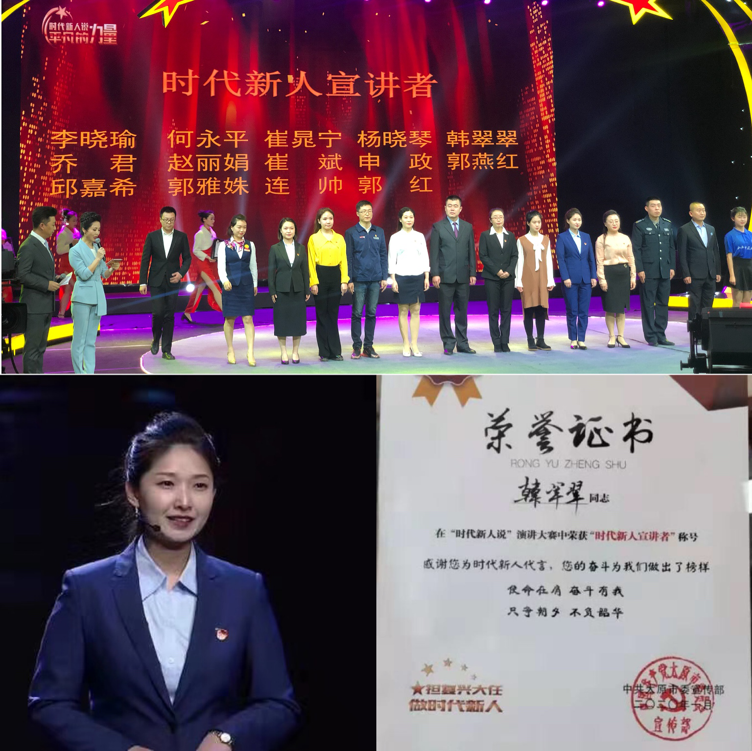 2020年1月15日下午,由中共太原市委宣傳部主辦、太原市廣播電視臺承辦、人民網(wǎng)山西頻道協(xié)辦的第三季大型講述活動“時代新人說—平凡的力量”在太原電視臺進行決賽,我公司韓翠翠同志在第三組決賽中以《黨旗下的文化先鋒》為題進行了精彩講述,并榮獲“時代新人宣講者”稱號。