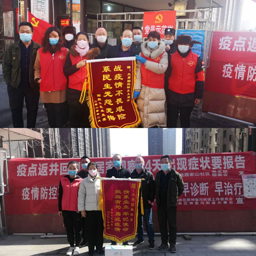 2020年3月10日下午,國興小區(qū)疫情防護工作組的人員正在井然有序的忙碌著,這時,一位業(yè)主手拿一幅寫著“戰(zhàn)疫情不畏艱險、系民生無怨無悔”的錦旗,送到國興小區(qū)西門房。3月11日上午,同樣的地點,我們又收獲了“情系業(yè)主 牢記使命 擔(dān)當(dāng)有為 勇戰(zhàn)疫情”的錦旗一幅。業(yè)主的話語都是一樣的:“感謝你們這么長時間辛勤的付出,保護著我們的家園不被病毒侵襲”,我們的回答也一樣:“這是我們應(yīng)該做的”!