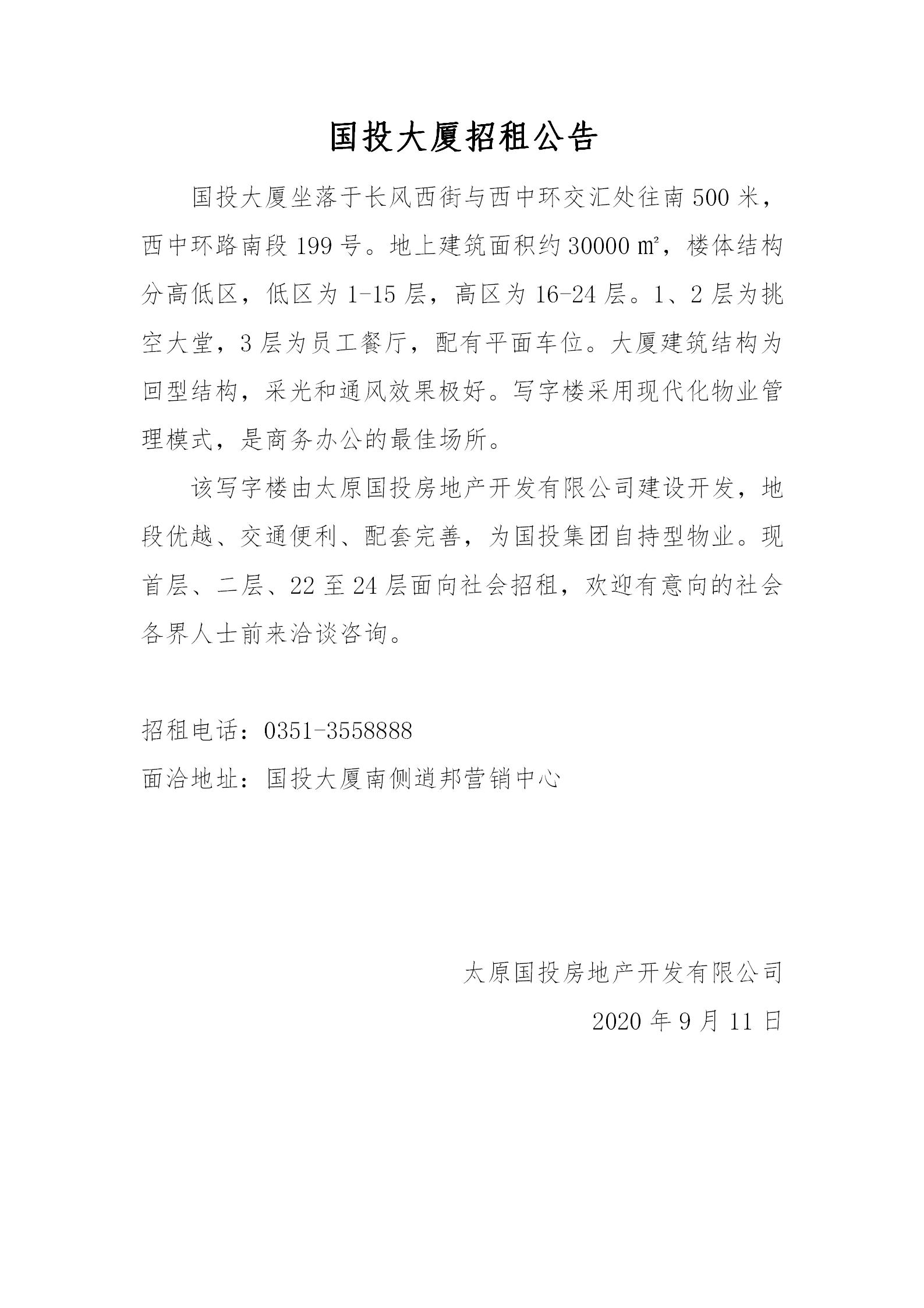 國投大廈招租公告