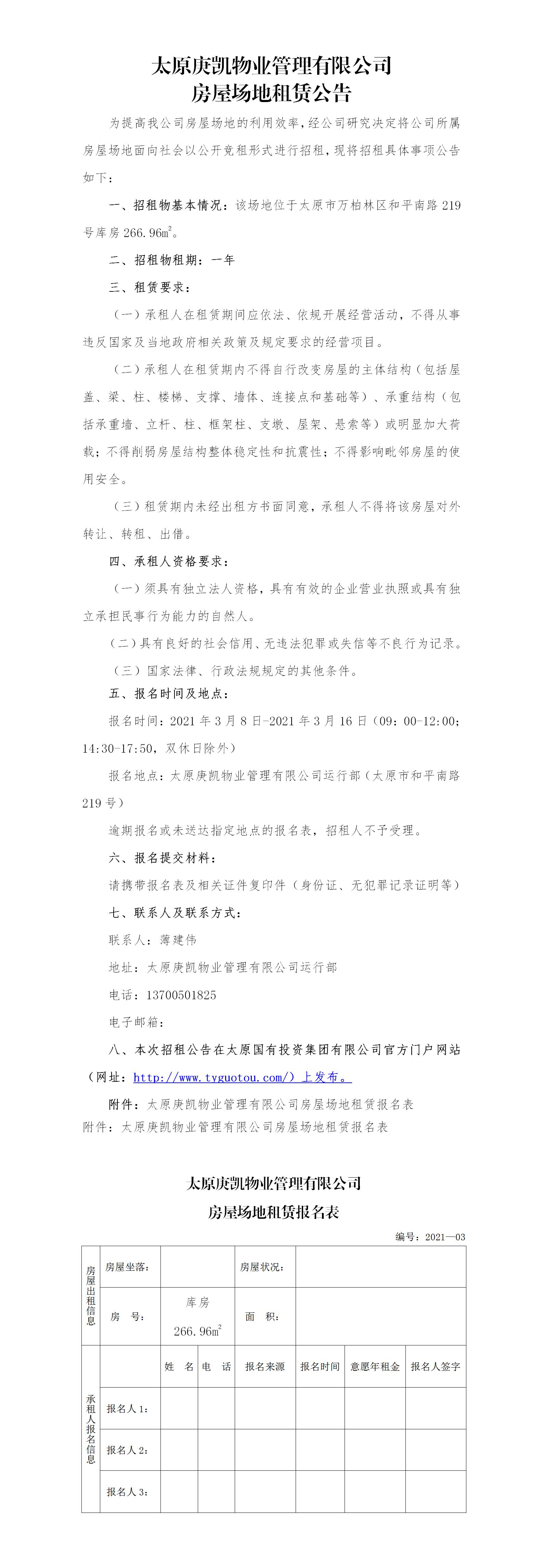 太原庚凱物業(yè)管理有限公司房屋場地租賃公告(二十四)