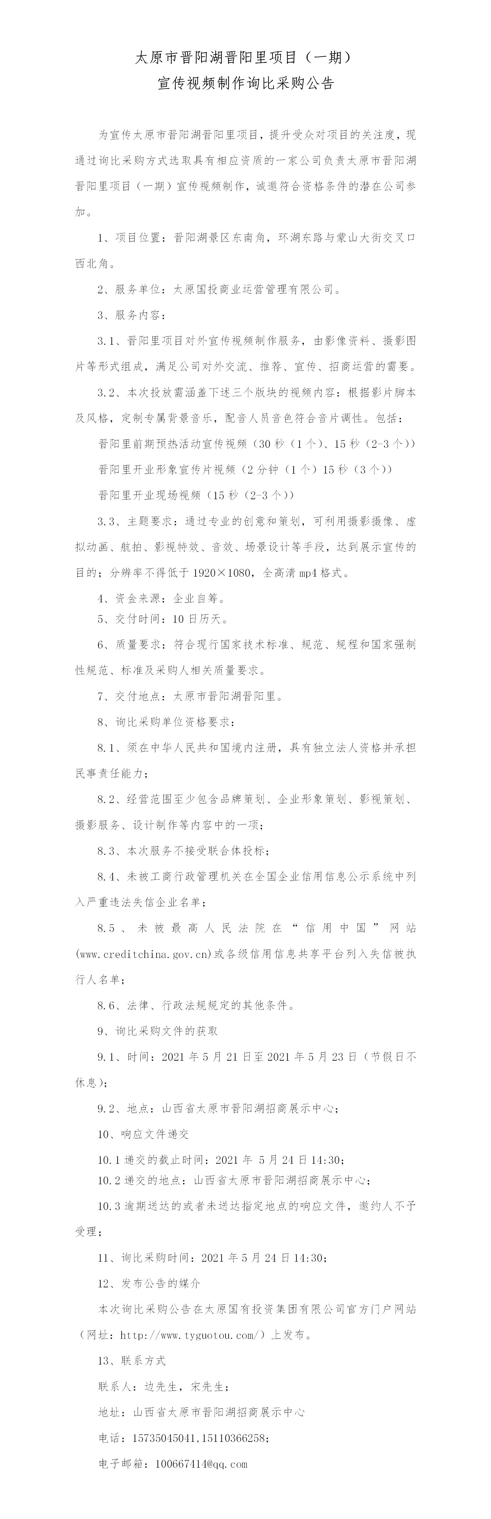 太原市晉陽湖晉陽里項(xiàng)目(一期)宣傳視頻制作公告