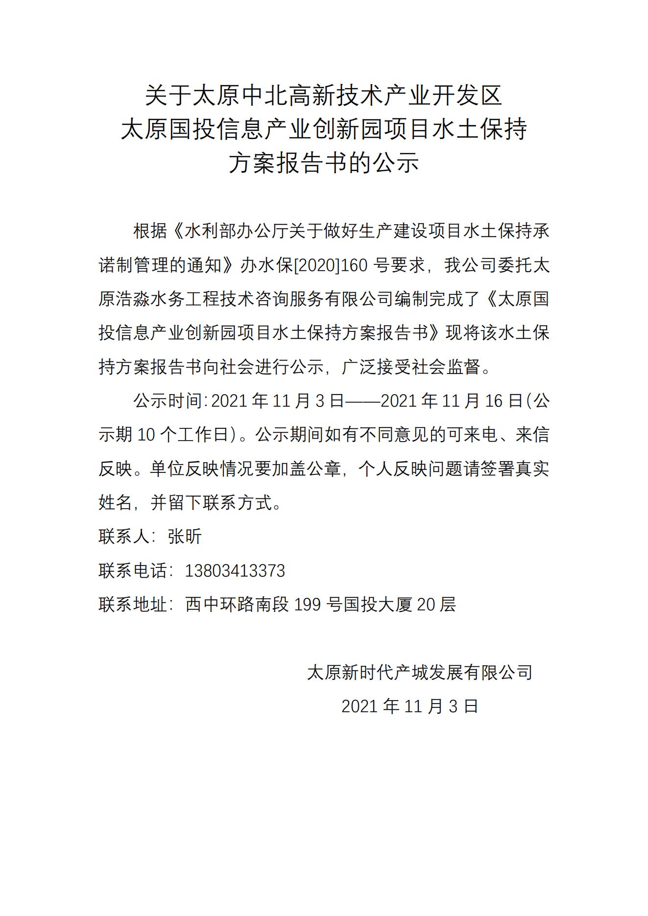 關(guān)于太原中北高新技術(shù)產(chǎn)業(yè)開(kāi)發(fā)區(qū)太原國(guó)投信息產(chǎn)業(yè)產(chǎn)業(yè)創(chuàng)新園項(xiàng)目水土保持方案報(bào)告書(shū)的公示