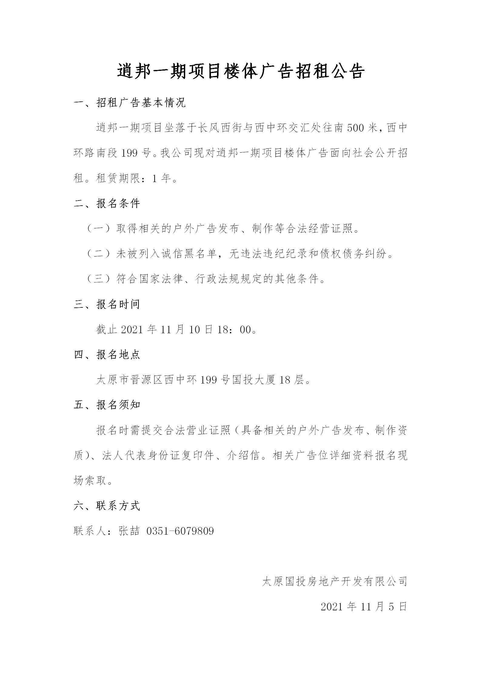 逍邦一期項目樓體廣告招租公告
