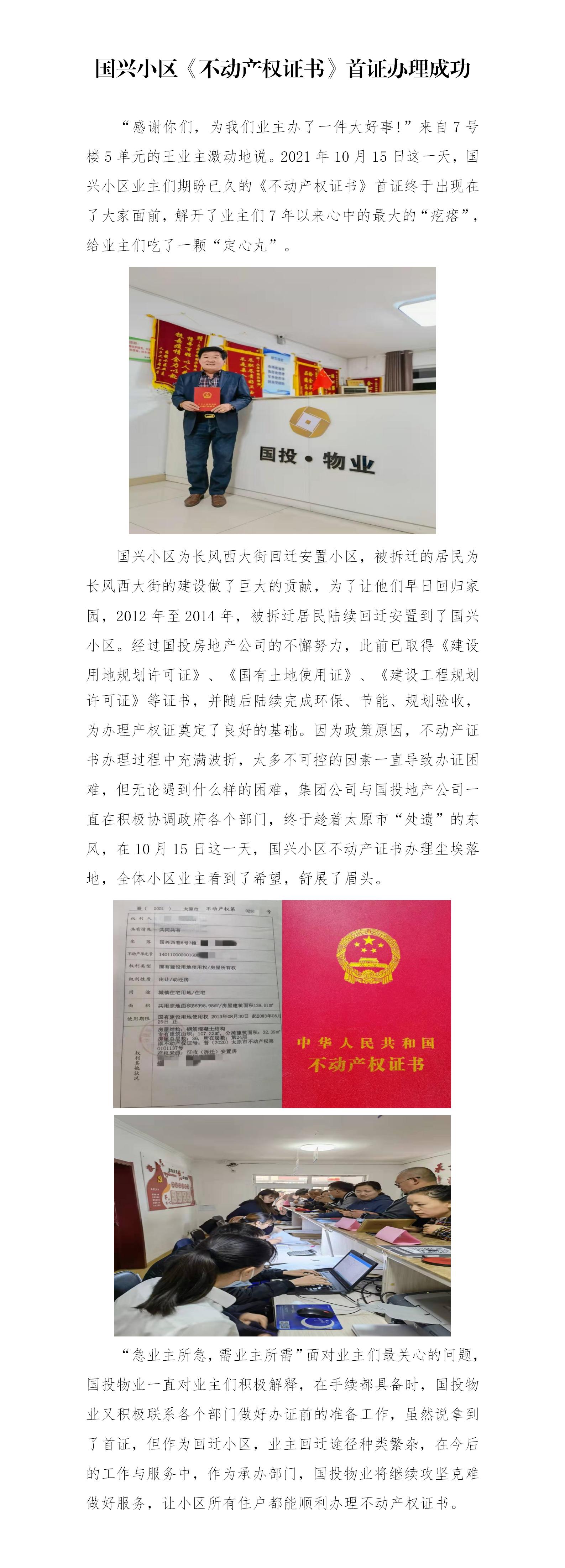 國(guó)興小區(qū)不動(dòng)產(chǎn)權(quán)證書(shū)首證辦理成功
