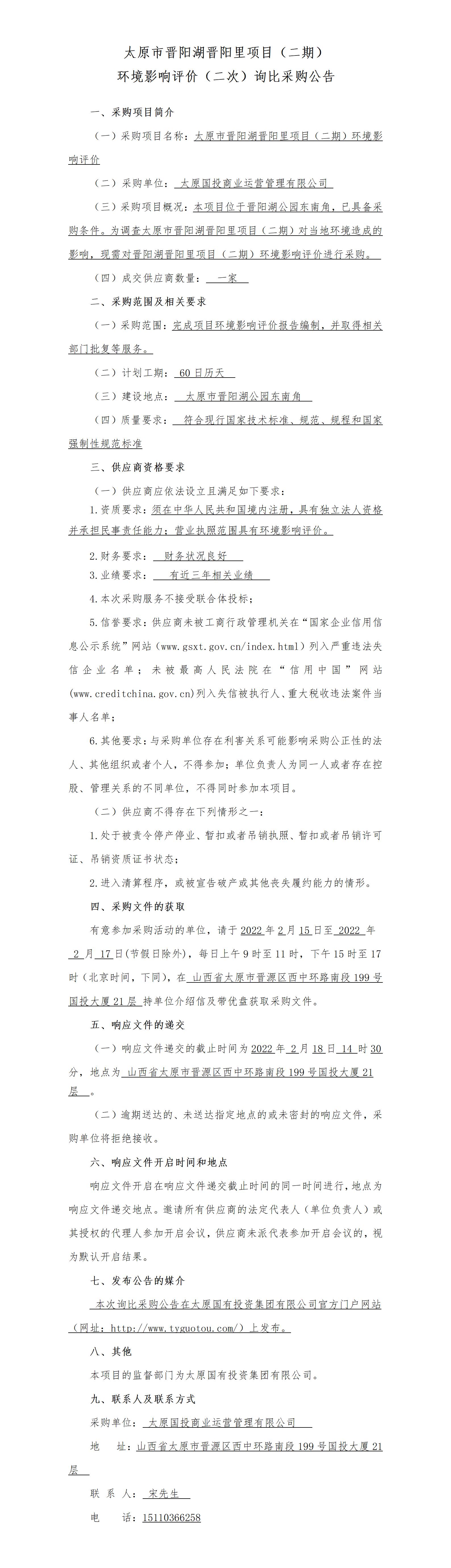 太原市晉陽湖晉陽里項(xiàng)目(二期)環(huán)境影響評(píng)價(jià)(二次)詢比采購公告