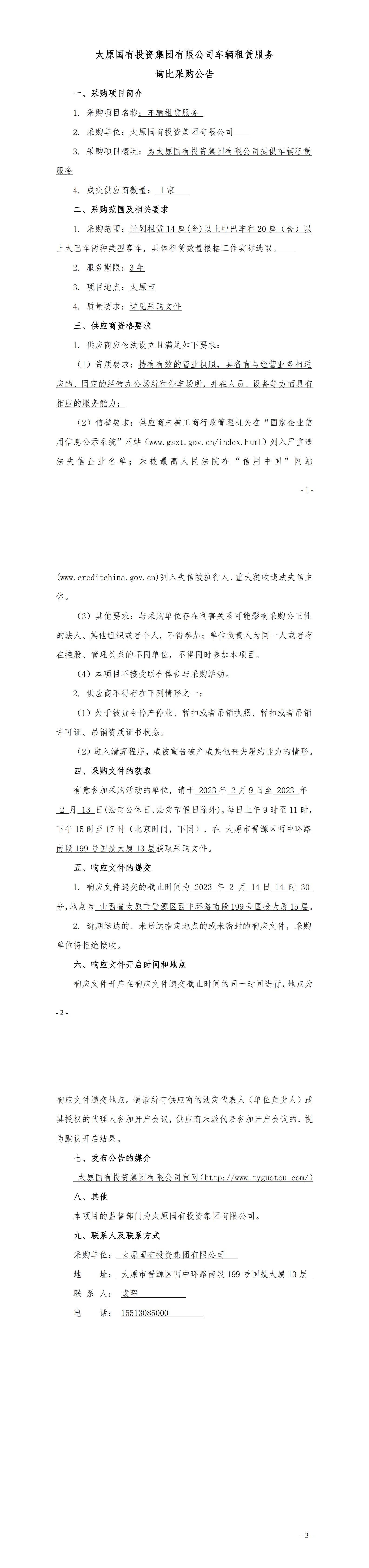 太原國有投資集團(tuán)有限公司車輛租賃服務(wù)詢比采購公告