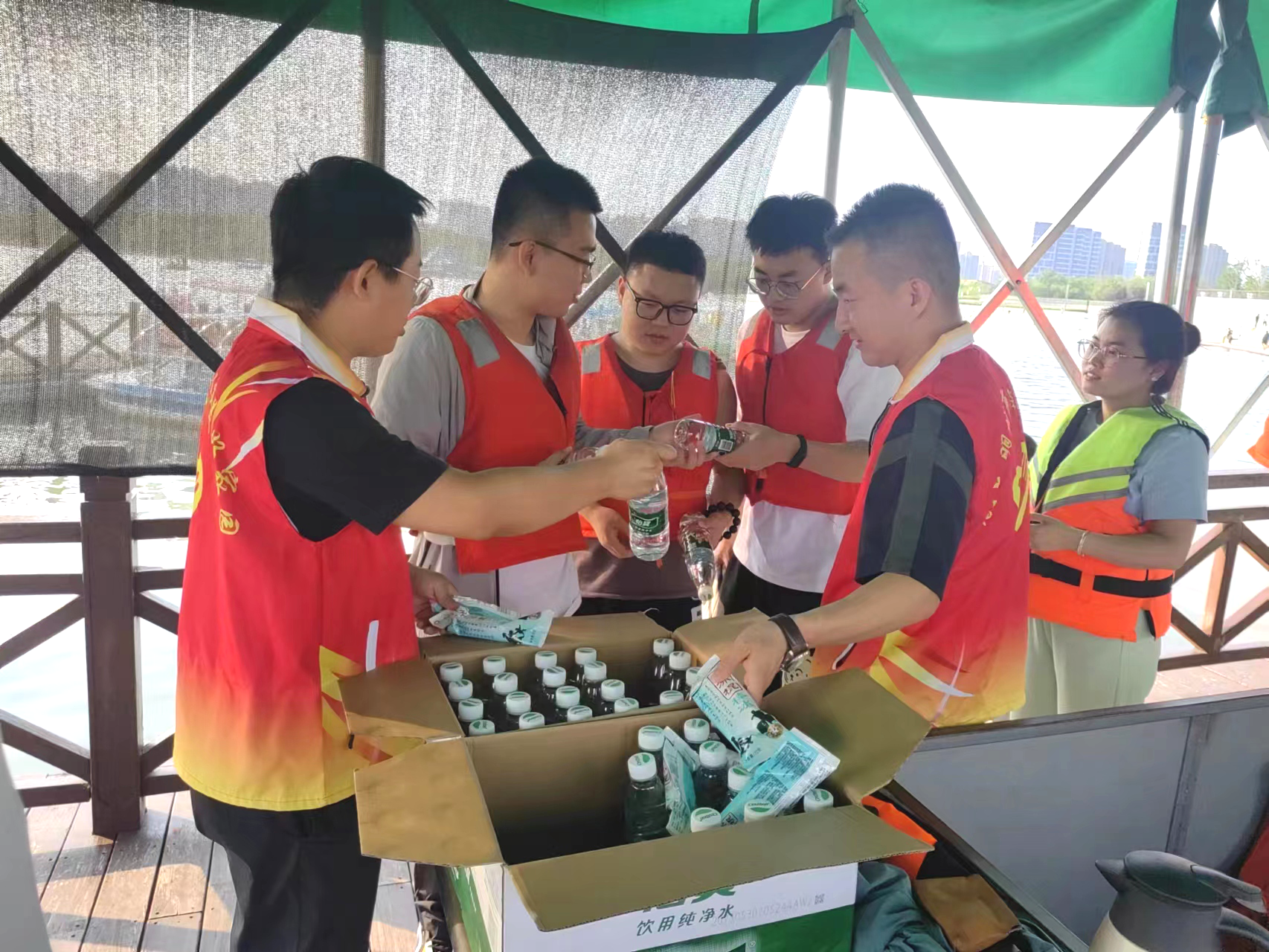 太原國投集團志愿者身穿醒目的志愿者馬甲,分成不同的小組,在晉陽湖公園1號碼頭、5號碼頭、沙灘浴場、桃花島及龍舟賽等人員密集區(qū)開展了“三防”安全重點排查、路線指引、秩序維護、交通疏導、安全提示等志愿服務,還為排隊游客免費發(fā)放礦泉水、雪糕解暑降溫,為晉陽·端午文化系列活動提供了基礎保障。