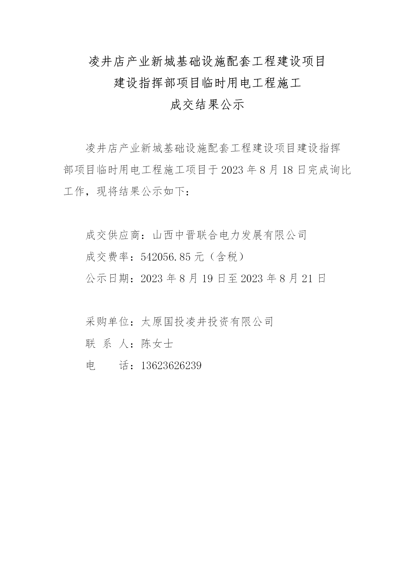 凌井店產(chǎn)業(yè)新城基礎(chǔ)設(shè)施配套工程建設(shè)項(xiàng)目建設(shè)指揮部項(xiàng)目臨時(shí)用電工程施工成交結(jié)果公示