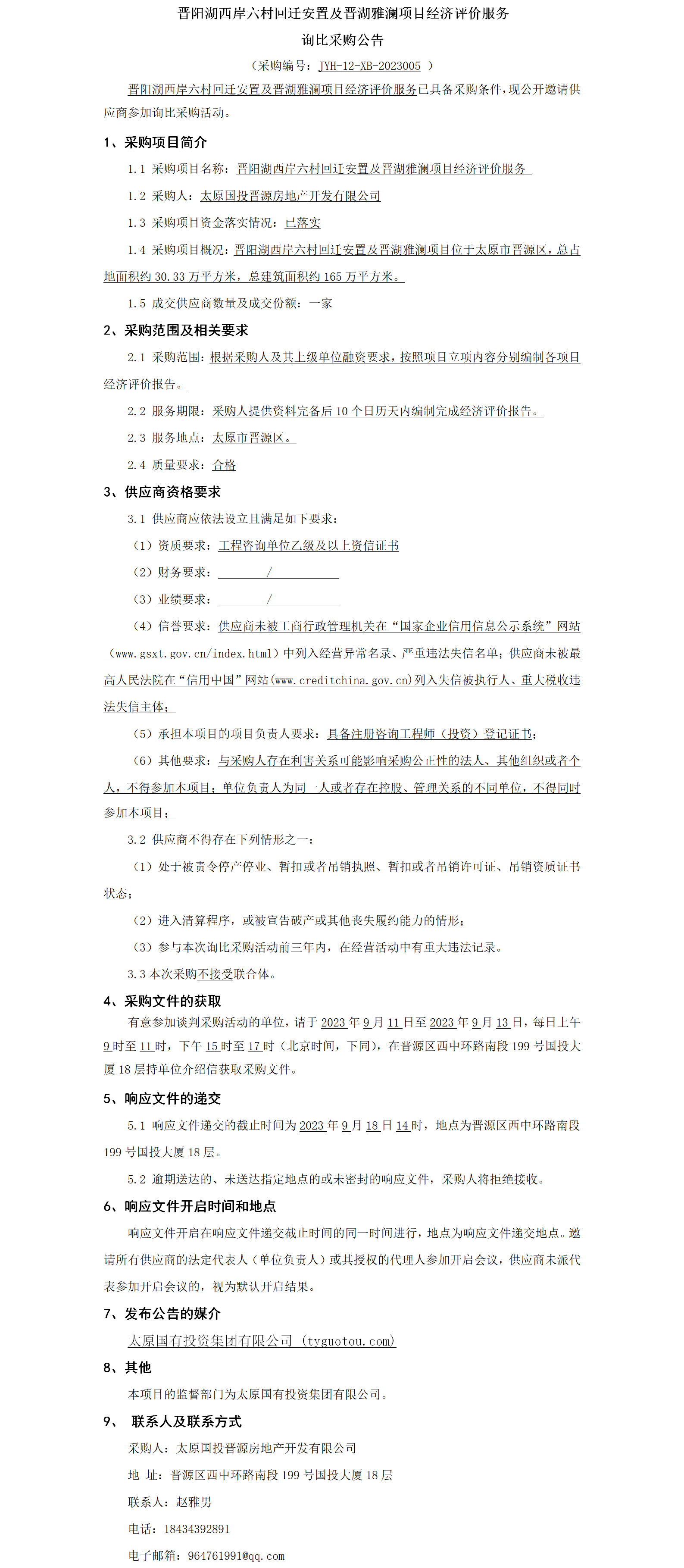 晉陽湖西岸六村回遷安置及晉湖雅瀾項目經(jīng)濟評價服務(wù)詢比采購公告