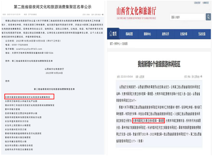 根據(jù)山西省文化和旅游廳辦公室《關(guān)于開展第二批省級(jí)夜間文化和旅游消費(fèi)集聚區(qū)評(píng)選有關(guān)工作的通知》、《關(guān)于開展第三批山西省省級(jí)旅游休閑街區(qū)評(píng)選有關(guān)工作的通知》要求,經(jīng)市級(jí)文旅部門審核推薦、省文旅廳組織專家進(jìn)行評(píng)審,我公司申報(bào)的《太原市晉源區(qū)晉陽(yáng)湖夜間文化和旅游消費(fèi)集聚區(qū)》、《太原市晉源區(qū)太原王府井奧萊?晉陽(yáng)里》成功獲選。