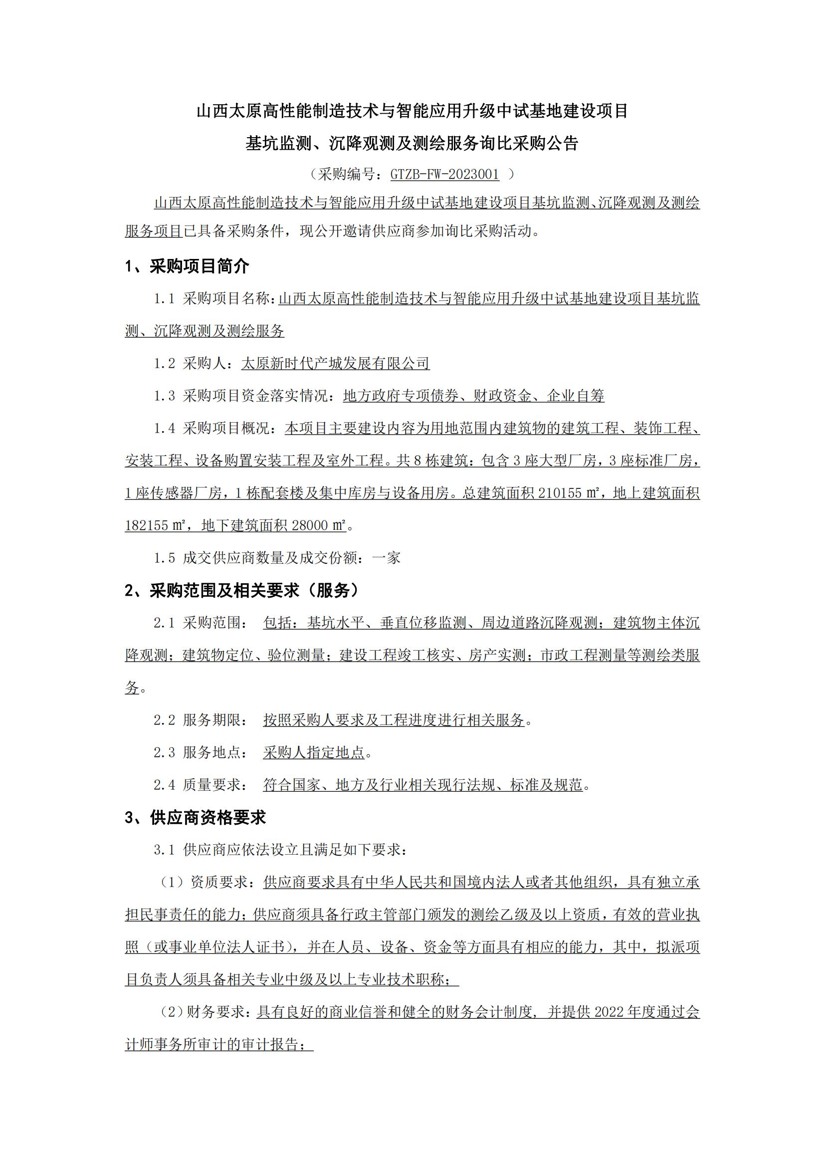 基坑監(jiān)測、沉降觀測及測繪服務(wù)詢比采購公告