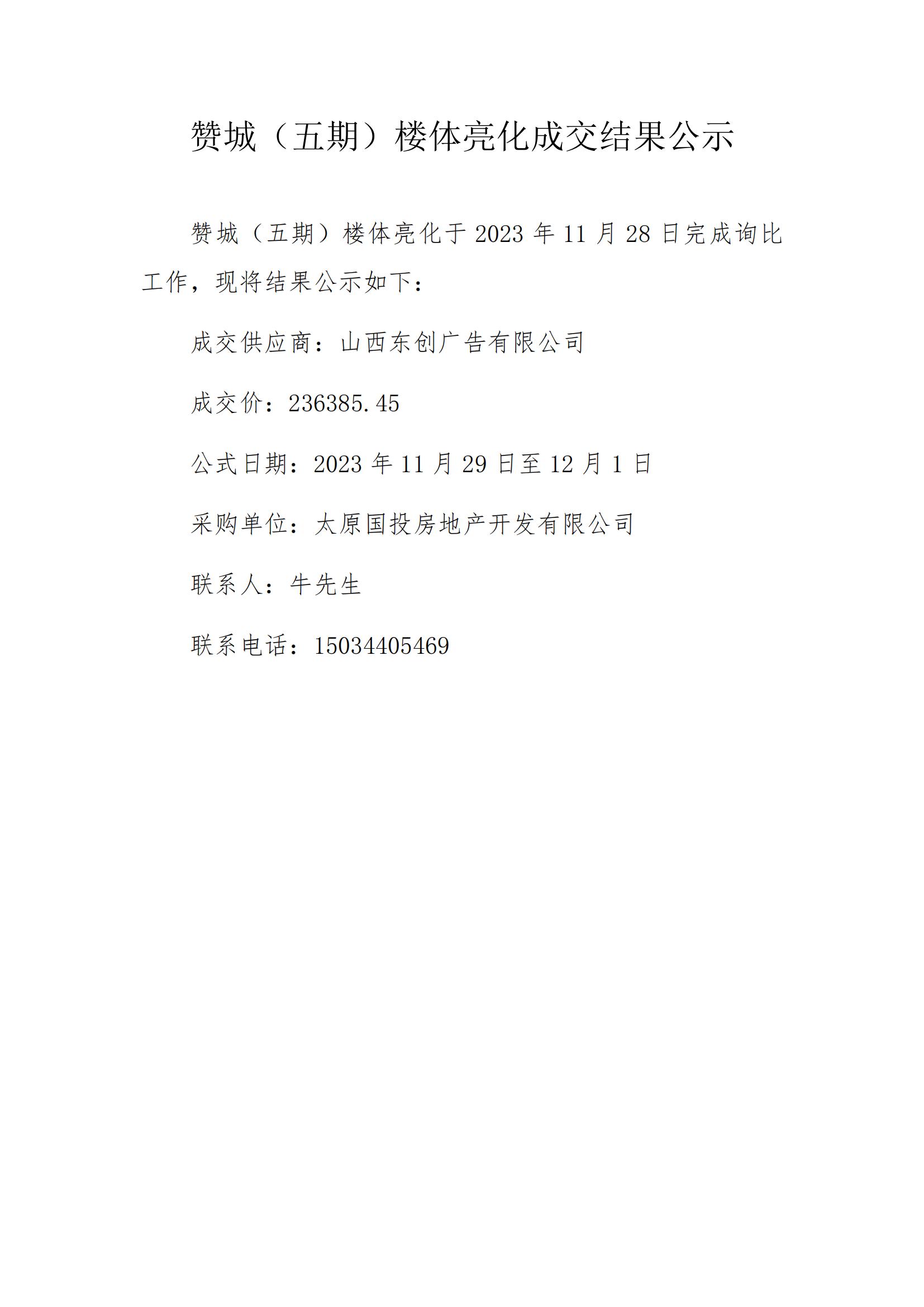 贊城(五期)樓體亮化成交結(jié)果公示