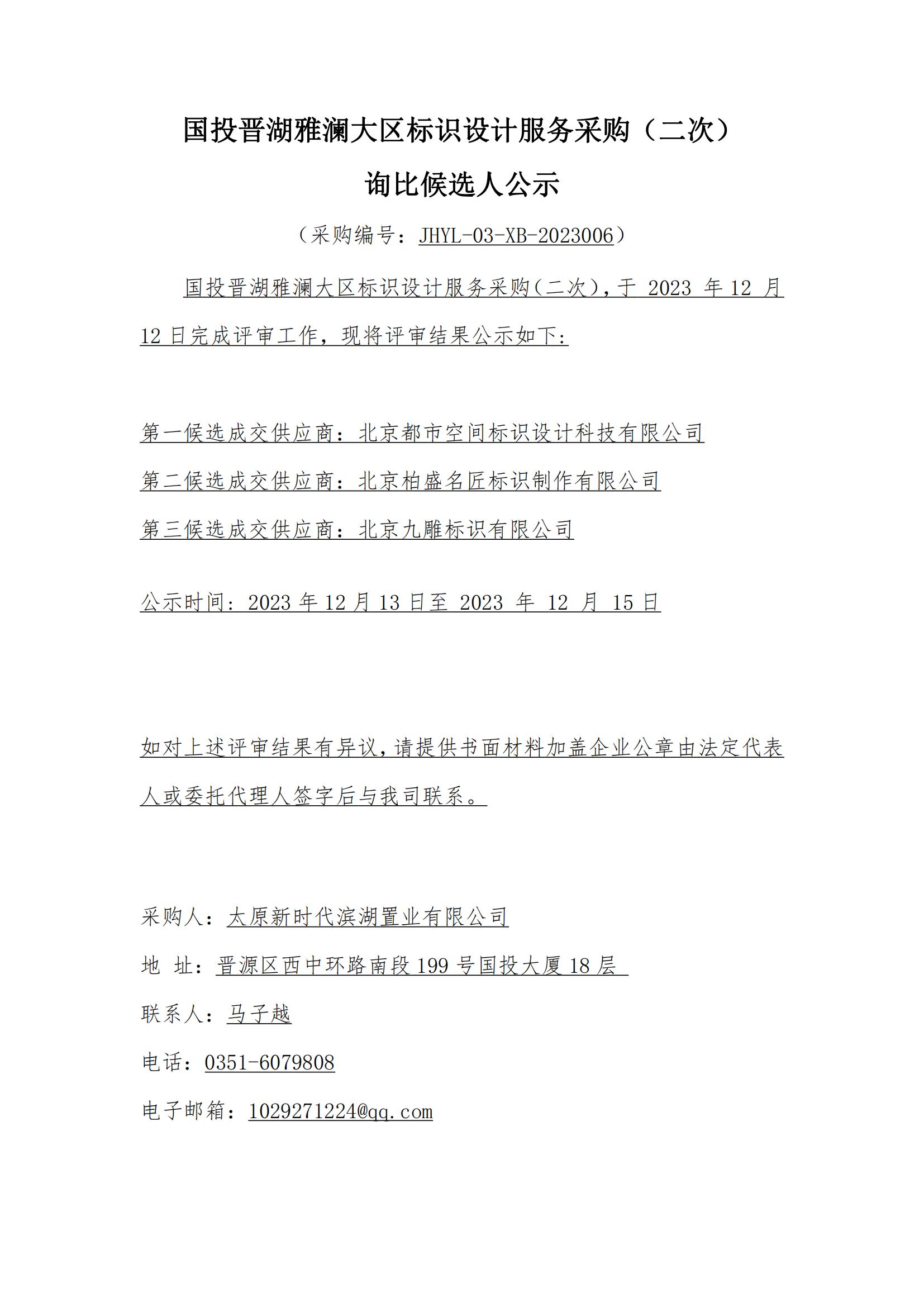 國(guó)投晉湖雅瀾大區(qū)標(biāo)識(shí)設(shè)計(jì)服務(wù)采購(gòu)(二次)詢(xún)比候選人公示