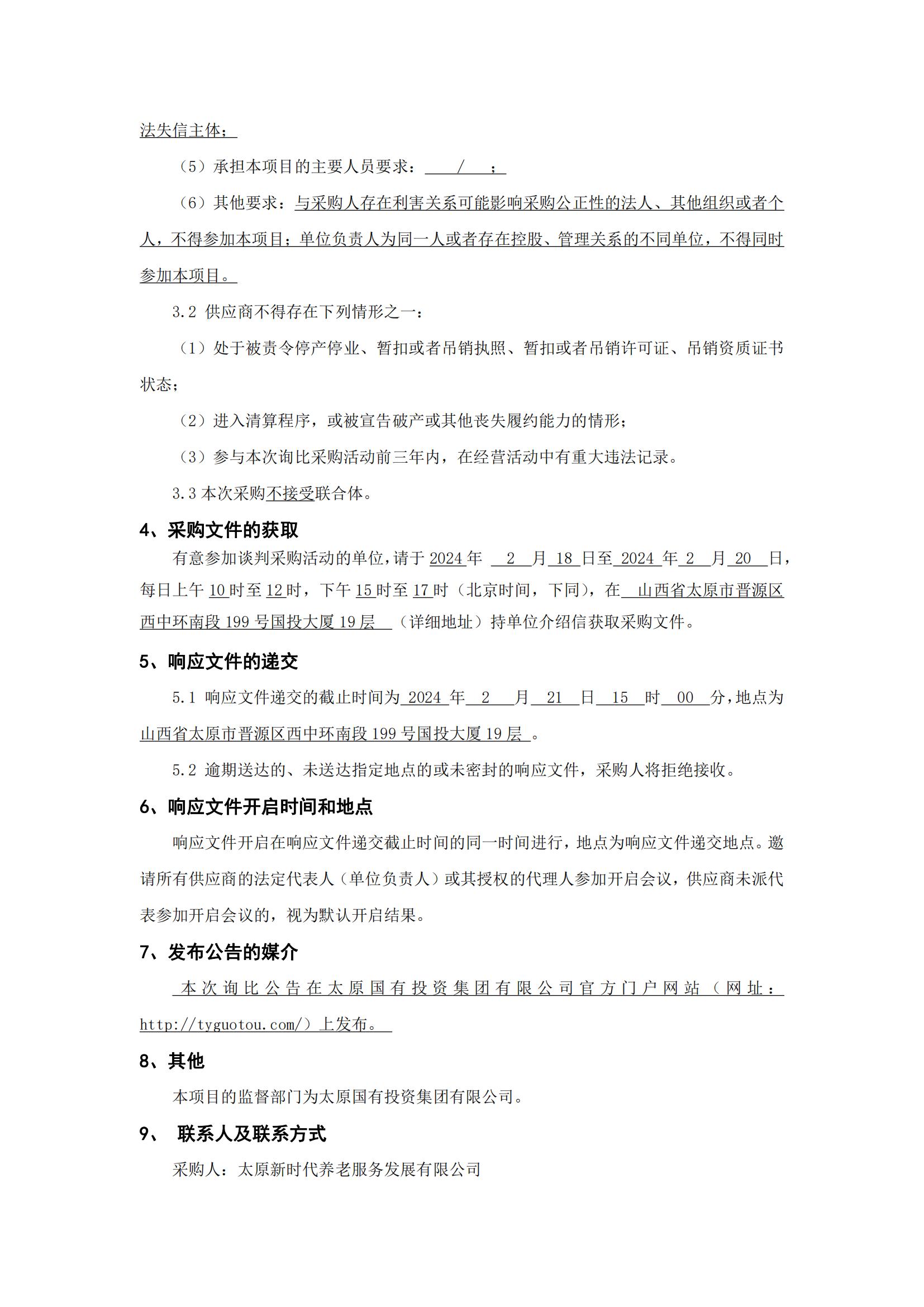 太原國(guó)投5G+智慧醫(yī)養(yǎng)康中心適老化家具采購(gòu) 詢(xún)比采購(gòu)公告