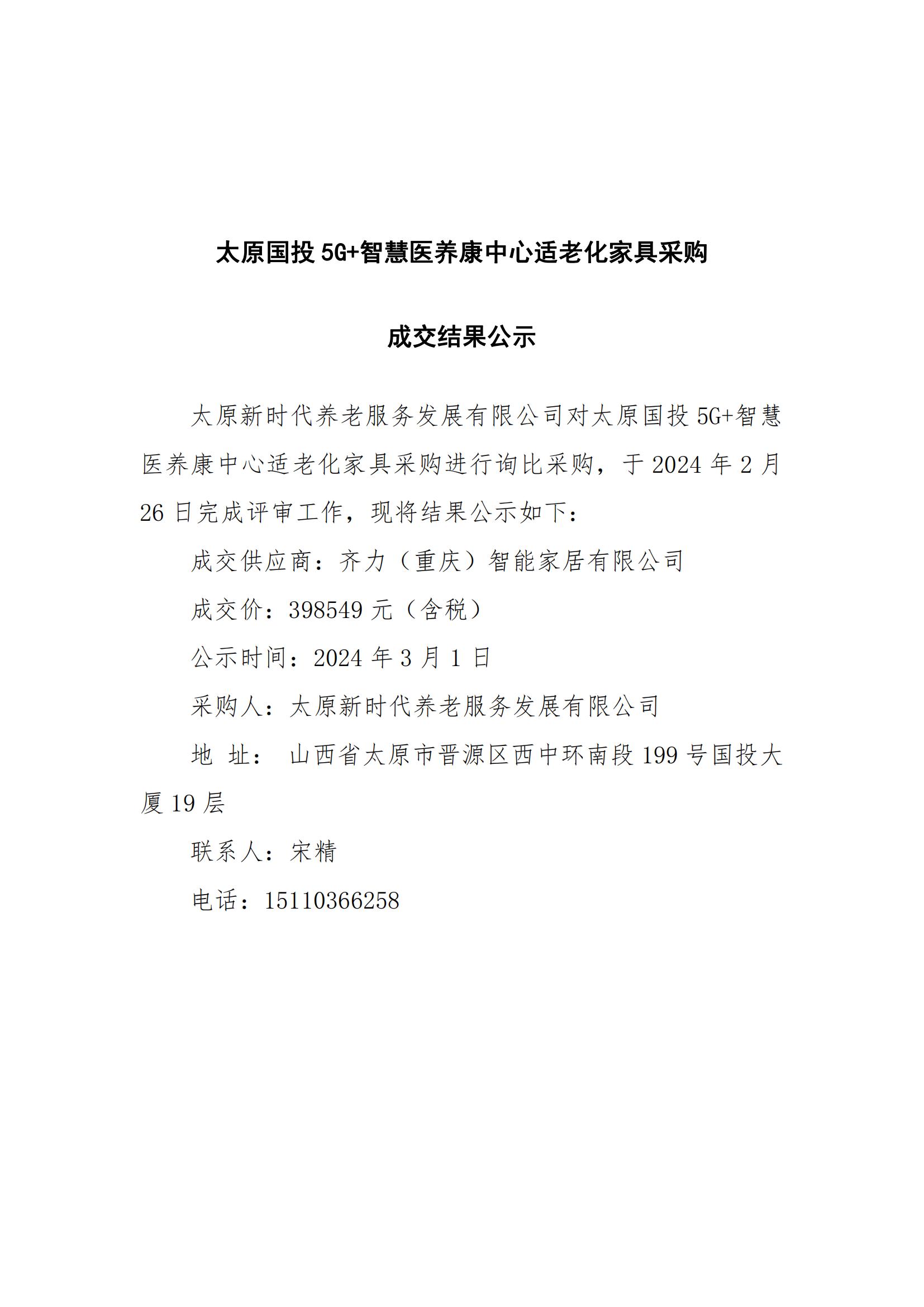 太原國投5G+智慧醫(yī)養(yǎng)康中心適老化家具采購成交結(jié)果公示