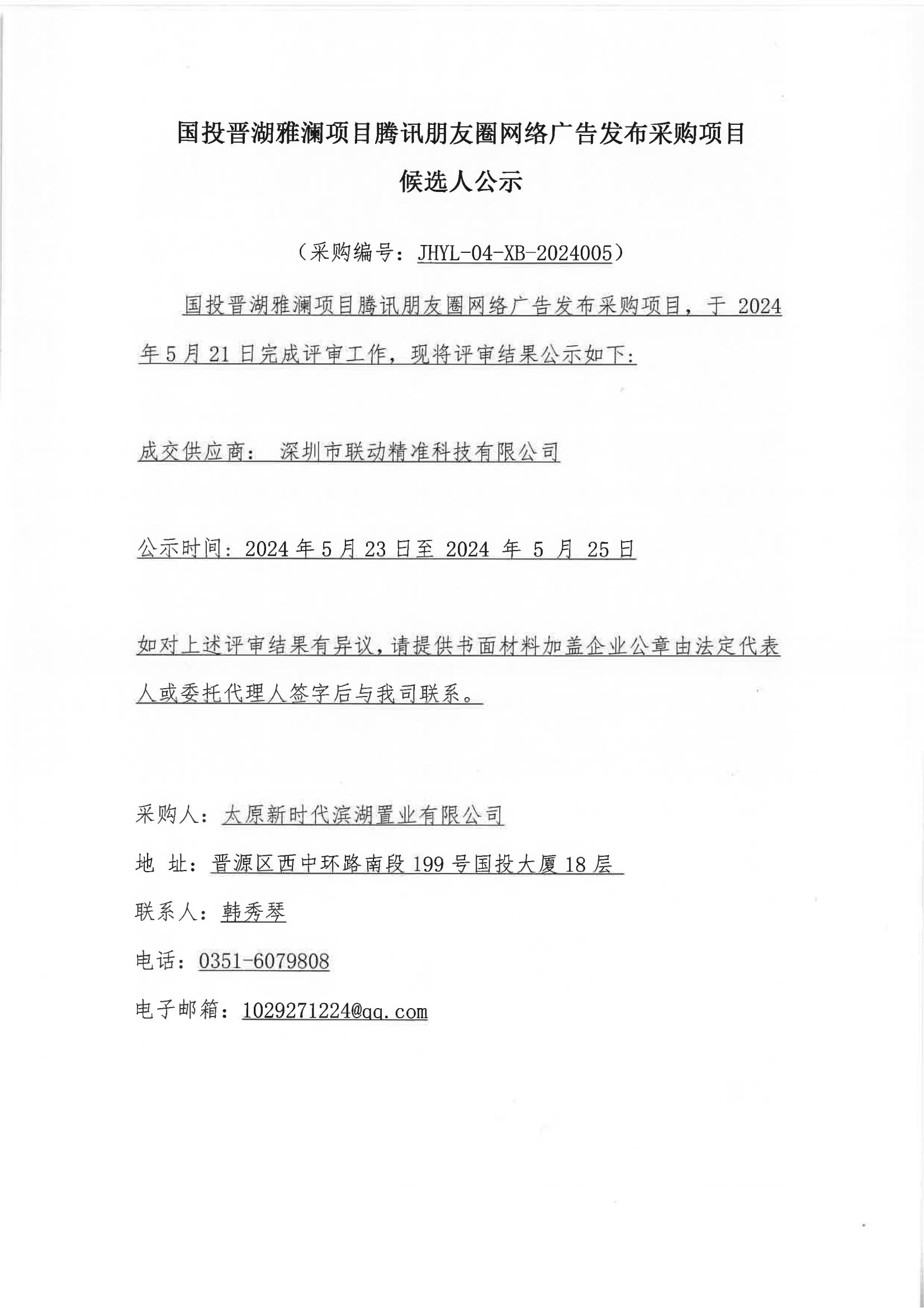 國投晉湖雅瀾項(xiàng)目騰訊朋友圈網(wǎng)絡(luò)廣告發(fā)布采購項(xiàng)目候選人公示