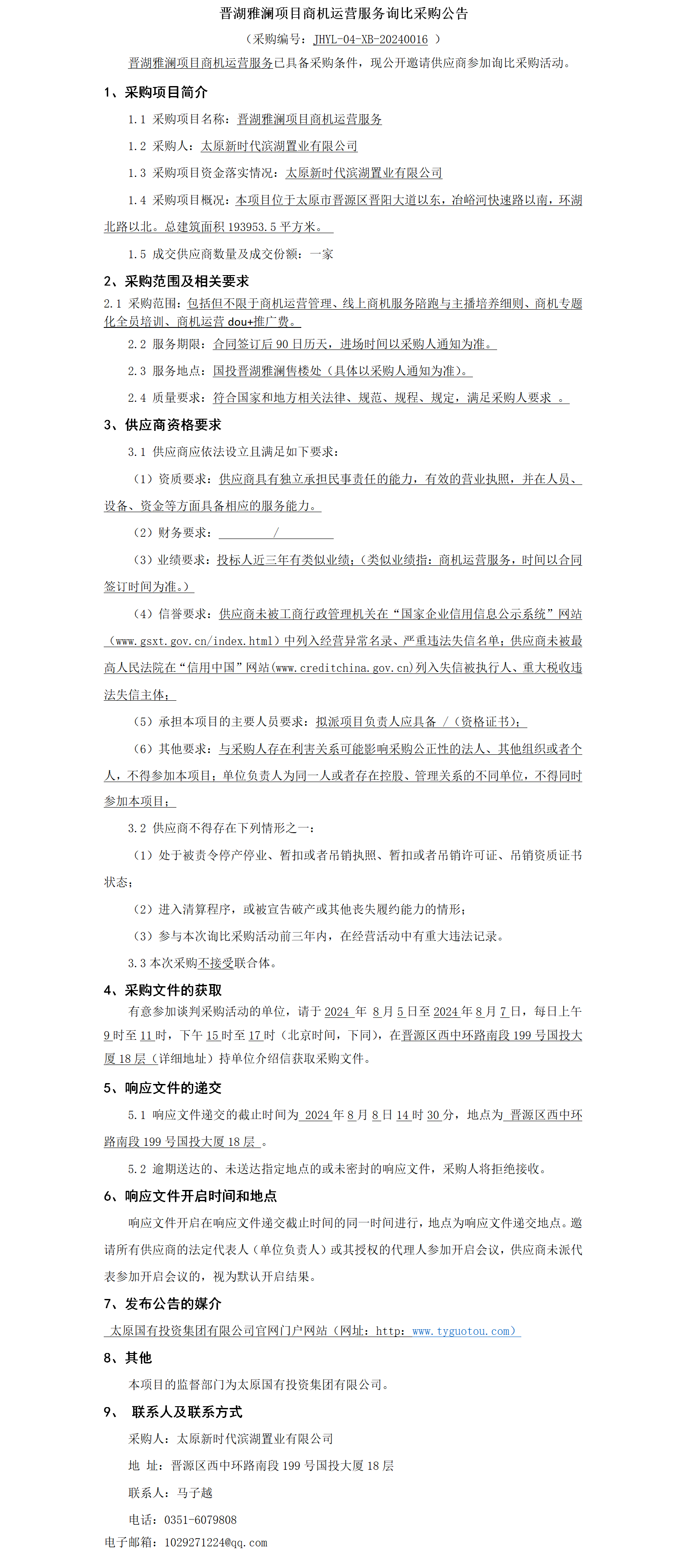 晉湖雅瀾項目商機(jī)運(yùn)營服務(wù)詢比采購公告