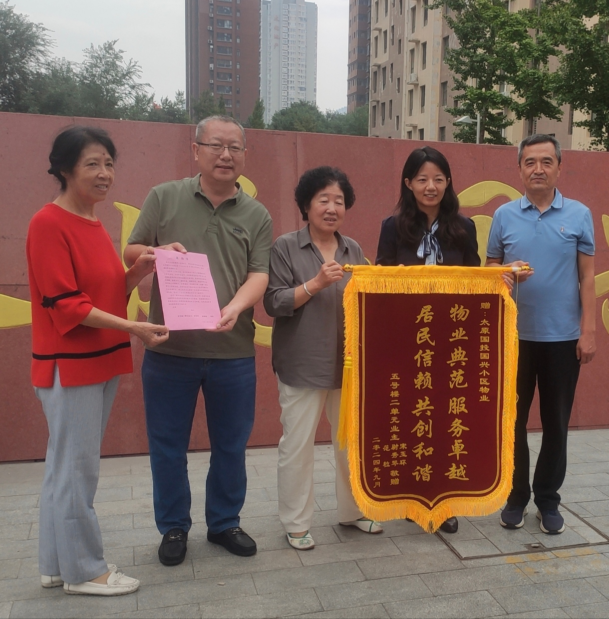9月20日上午,國興小區(qū)服務中心收到來自五號樓二單元業(yè)主宋女士、范女士、尉女士贈送的錦旗和感謝信,錦旗上“物業(yè)典范服務卓越,居民信賴共創(chuàng)和諧”十六個大字熠熠生輝,不僅是對物業(yè)團隊日常工作的高度評價,更是對我們長期以來堅持“以業(yè)主為中心”的最好見證。獲得錦旗不僅讓物業(yè)全體成員倍感溫暖與鼓舞,也進一步激發(fā)了大家繼續(xù)提升服務質量,優(yōu)化居住環(huán)境的決心和動力。