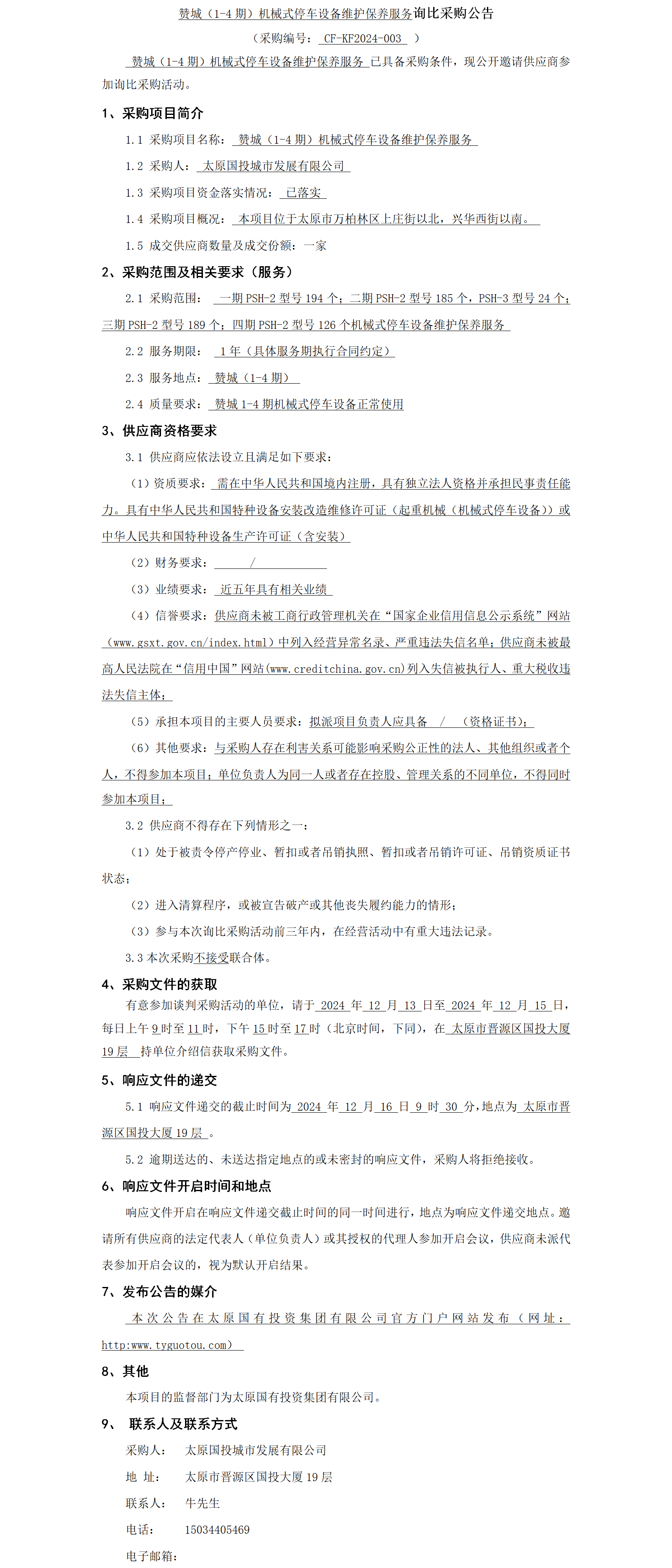 贊城(1-4期)機械式停車設(shè)備維護保養(yǎng)服務(wù)詢比采購公告