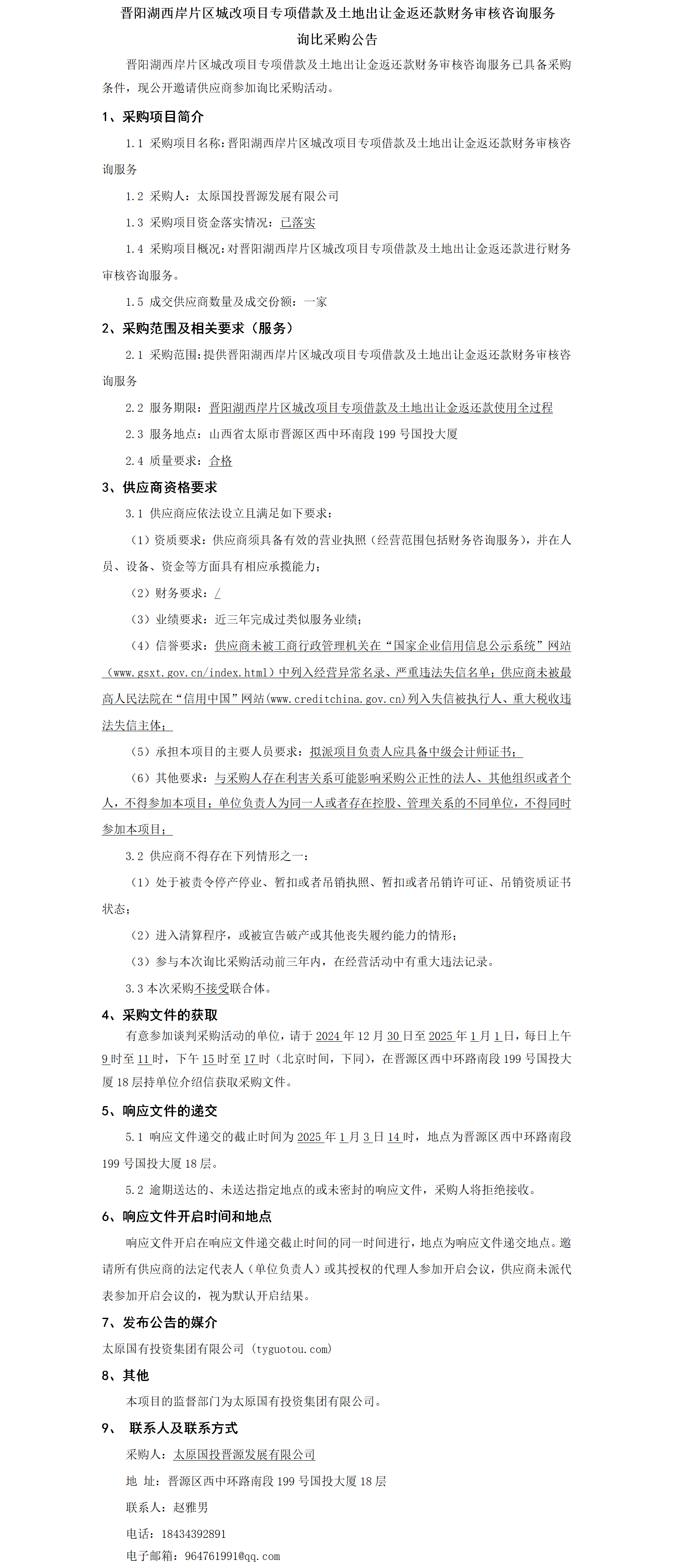 晉陽湖西岸片區(qū)城改項目專項借款及土地出讓金返還款財務(wù)審核咨詢服務(wù)詢比采購公告
