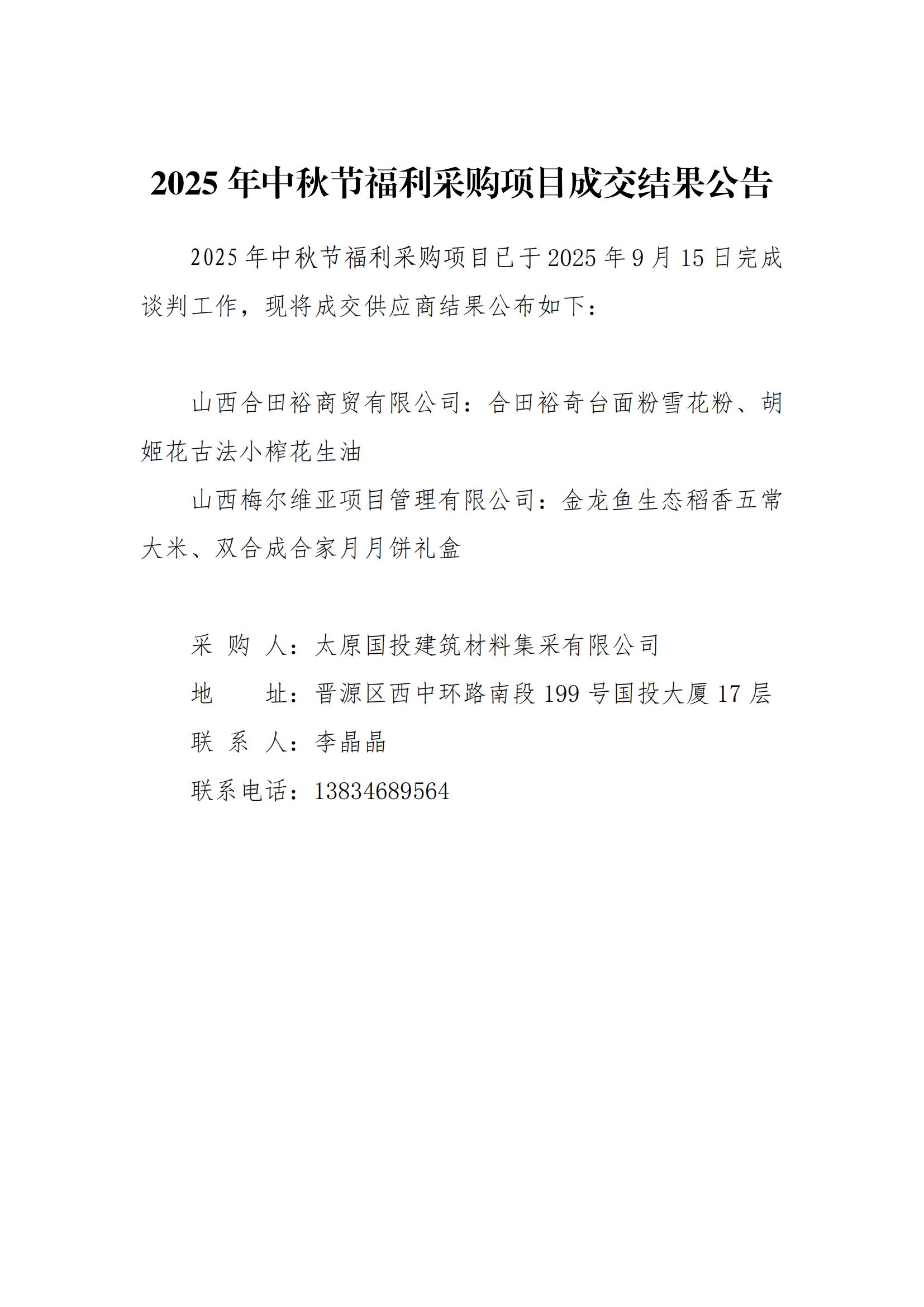 2025年中秋節(jié)福利采購項(xiàng)目成交結(jié)果公告