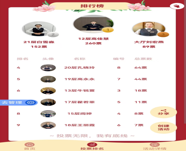 國(guó)投大廈客戶服務(wù)部在日常工作中,通過(guò)組織開展文明禮儀、業(yè)務(wù)技能專題培訓(xùn)強(qiáng)化素養(yǎng)提升。活動(dòng)啟動(dòng)后,客服工作人員掀起了爭(zhēng)先創(chuàng)優(yōu)的創(chuàng)建熱潮,廣大客戶積極參與,為心目中的“服務(wù)標(biāo)兵”,投上了自己寶貴的一票。