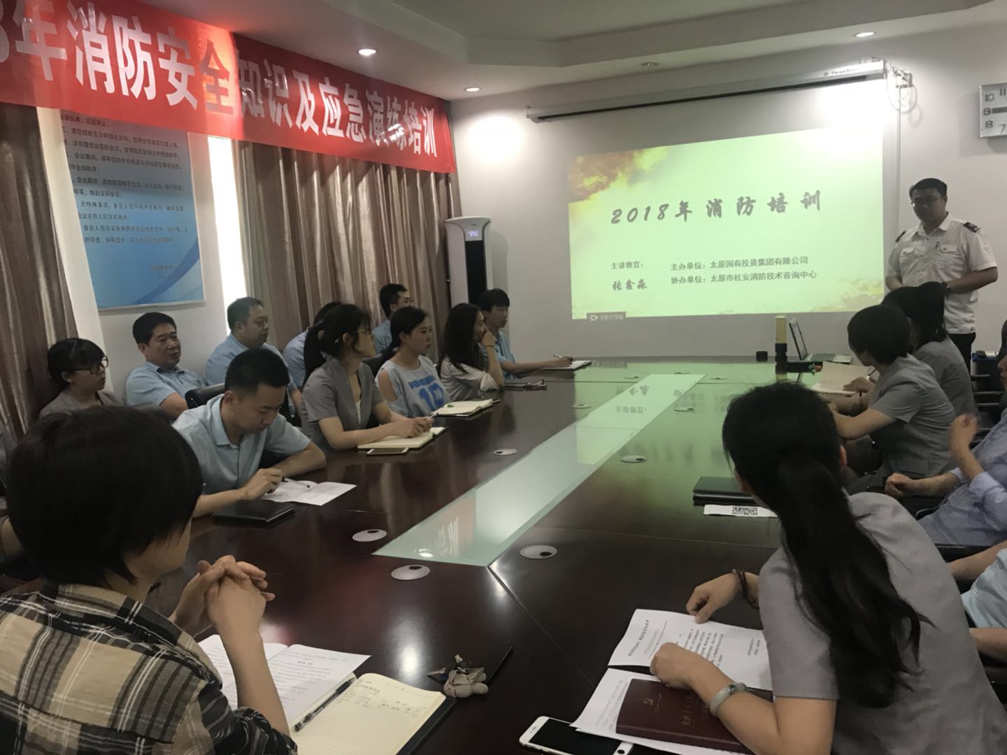 教官結合近年來的火災案例特別是高層建筑、電氣火災案例,就消防日常管理、平常檢查、遵守以及疏散逃生的基本常識、消防火災的應急和預防、消防器材的正確使用方法進行了深入淺出的講解。期間,員工們結合自己工作和生活中所接觸到的消防安全隱患提問,進行了互動與溝通。教官又列舉了大量實例和現(xiàn)場的圖片,展示缺乏消防意識和消防知識的嚴重危害。最后結合實際,對火災特點、預防火災的基本常識,火災發(fā)生、發(fā)展、熄滅的基本規(guī)律和特點等方面知識進行了講解,傳授了防范措施和如何對初期火災進行撲救,以及如何組織人員疏散、火場自救逃生方法等知識。