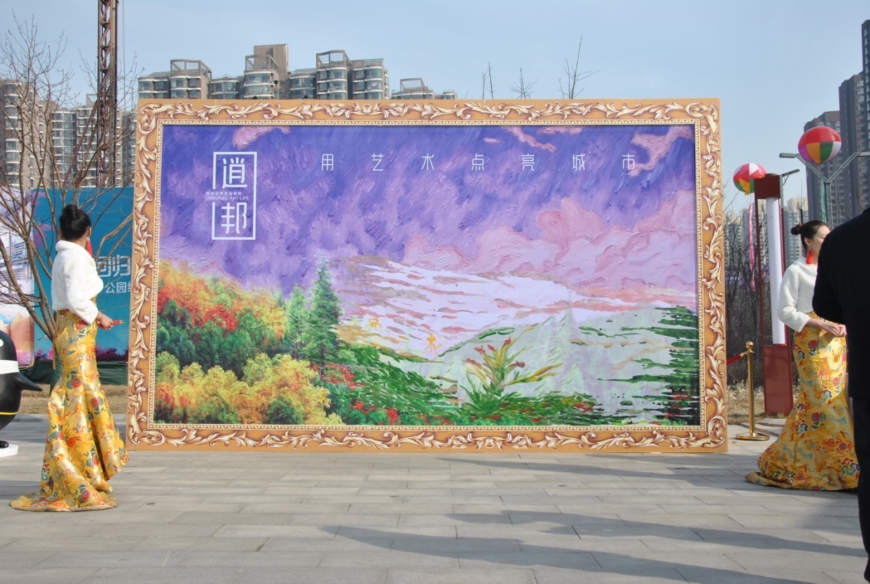 上午9點30分,營銷中心前廣場響起了輕快悠揚的爵士樂,嘉賓們陸續(xù)到場簽到。伴隨輕快的音樂,來賓們在空白的油畫框上體驗涂鴉的趣味,為逍邦留下首幅原創(chuàng)作品。
